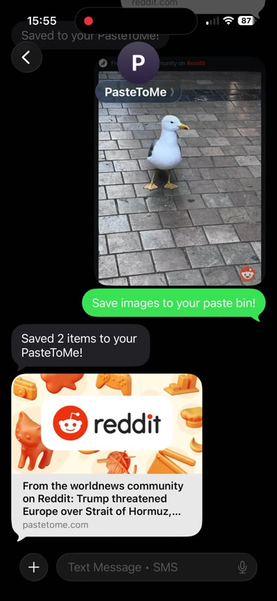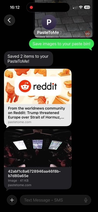 Right-click to save text, links, or images from any webpage. Or text/send an image to your PasteToMe number from your phone — it goes straight to your pastes.